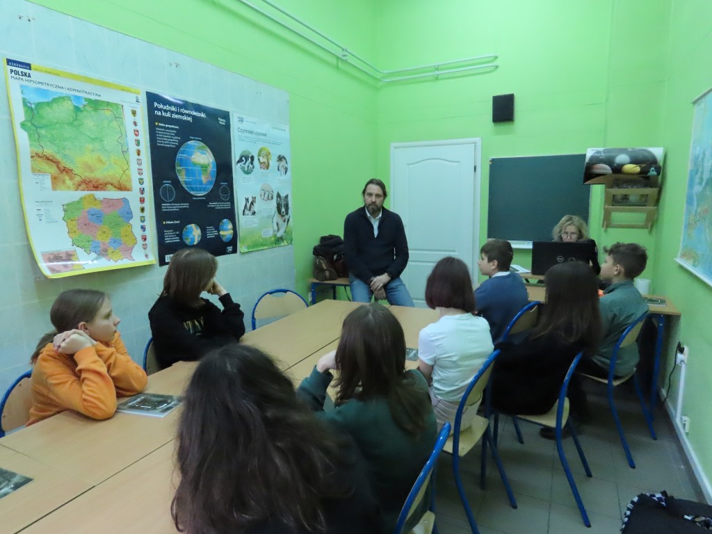 który opowiedział uczniom o swojej twórczości i czytał własne teksty.
