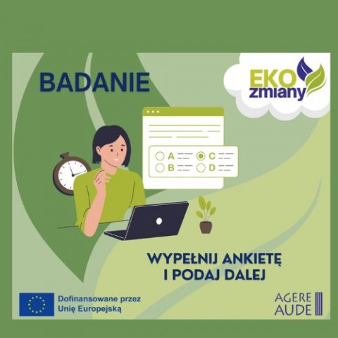 Fundacja Wiedzy i Dialogu Społecznego Agere Aude prowadzi badanie dotyczące postaw mieszkańców wobec ekologii i ochrony środowiska. Państwa opinie są niezwykle istotne – pozwolą dopasować przyszłe działania edukacyjne i wspierające lokalne społeczności. Link do ankiety: https://forms.gle/Gx5pwt9LggwyrVav9 Zachęcamy do udziału – każdy głos ma znaczenie! Projekt „EKOzmiany” jest finansowany ze środków Unii Europejskie
