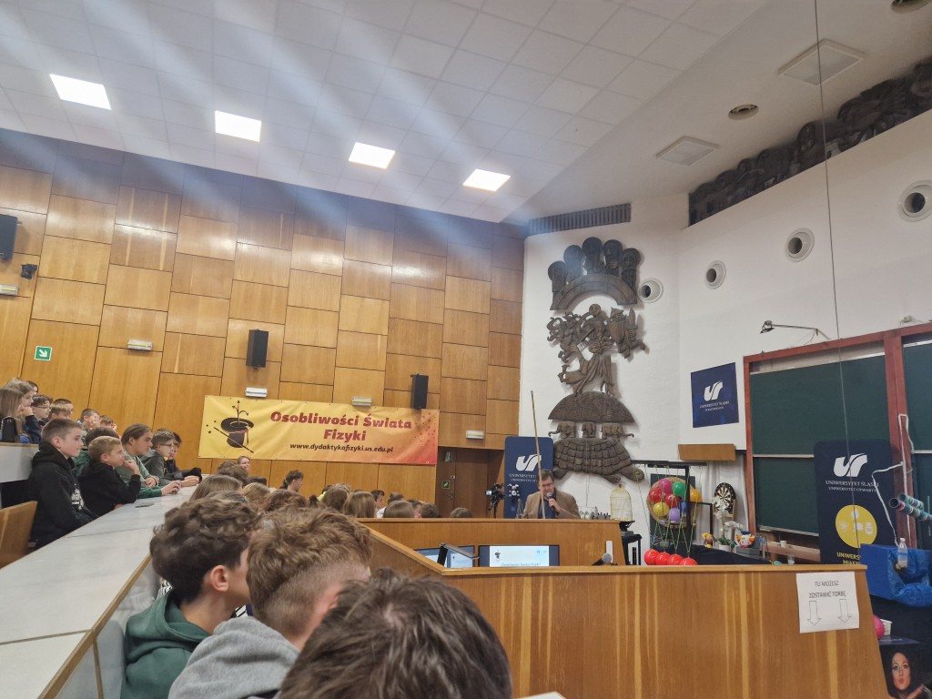 Uczniowie klas ósmych wzięli udział w wycieczce do Katowic, gdzie odwiedzili Uniwersytet Śląski i uczestniczyli w zajęciach z cyklu „Osobliwości Świata Fizyki”.