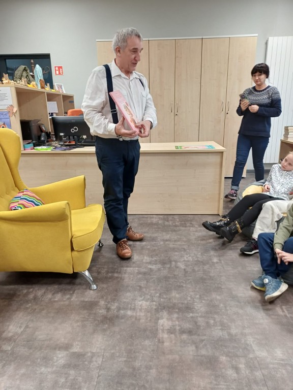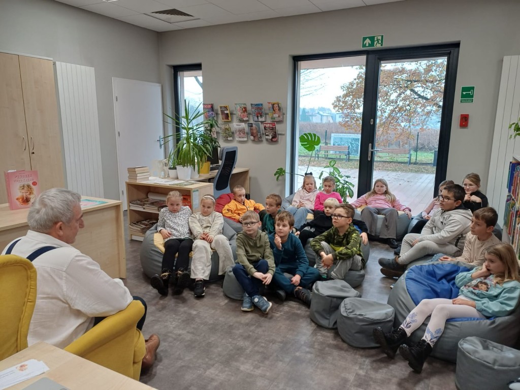 W dniu 12 listopada klasa 2a wraz z wychowawcą udała się do Biblioteki Miejskiej w Kamieniu na spotkanie z ciekawym Człowiekiem - autorem książki "Pluszek" panem Tadeuszem Syska.