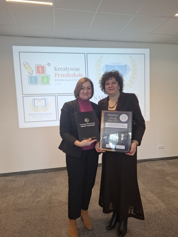 Podczas uroczystości, która odbyła się w Warszawie, odebraliśmy prestiżowy Certyfikat Kreatywna Szkoła – Innowacyjny Uczeń 2026, który jest wyrazem uznania dla pasji i nieszablonowego myślenia naszych wychowanków. Uroczystość uświetnił zachwycający występ wokalny, który nadał wydarzeniu podniosły i wzruszający charakter. Piękna oprawa muzyczna sprawiła, że moment odbierania nagród na scenie na długo zapadnie w naszej pamięci. Te sukcesy to wspólny owoc pracy ambitnych uczniów, pełnych pasji nauczycieli oraz wspierających nas rodziców.